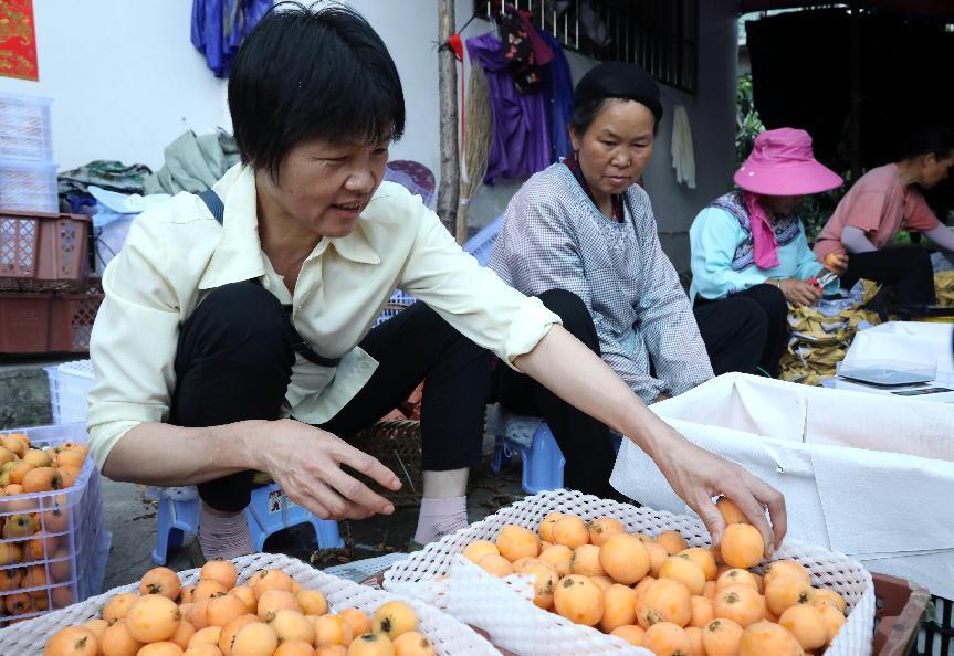 枇杷产业的蓬勃发展,鼓起了果农的“钱袋子”,也为周边群众提供了就业机会。在采摘高峰期,每天需要近600个工人采摘、剪果、包装,每人每天工资120元,当地群众实现了“家门口”就业增收。