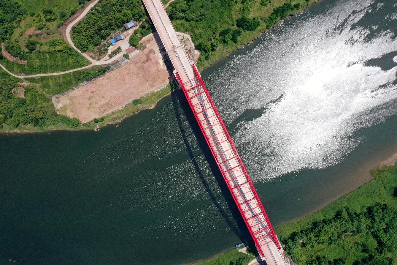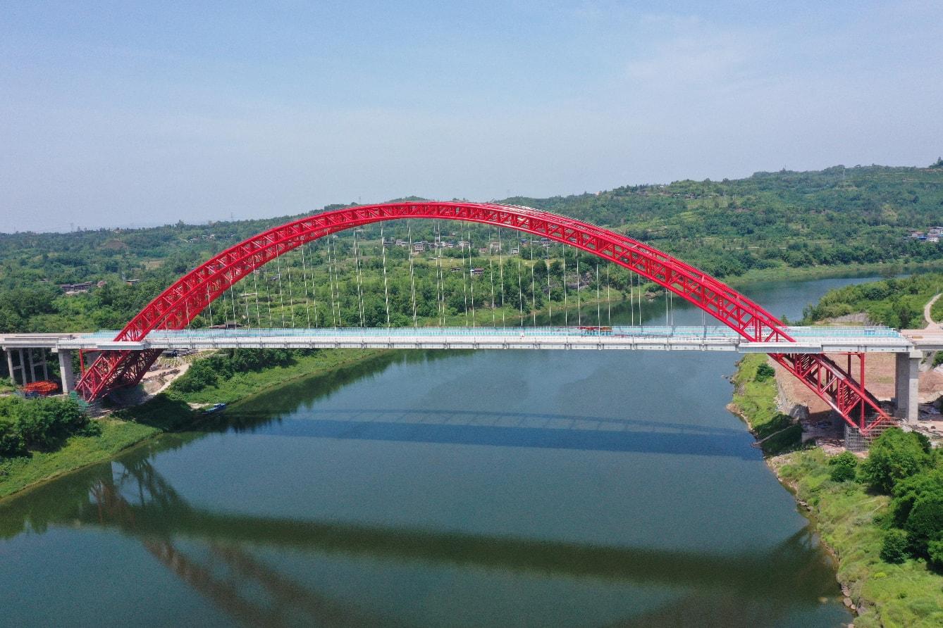 白马渠江特大桥横跨渠江,连接四川省广安市广安区与前锋区。大桥主桥采用“一跨过江”的中承式钢管混凝土拱桥设计,全长657.8米,净跨径390米。(广安区融媒体中心/廖小兵、蒋凯)