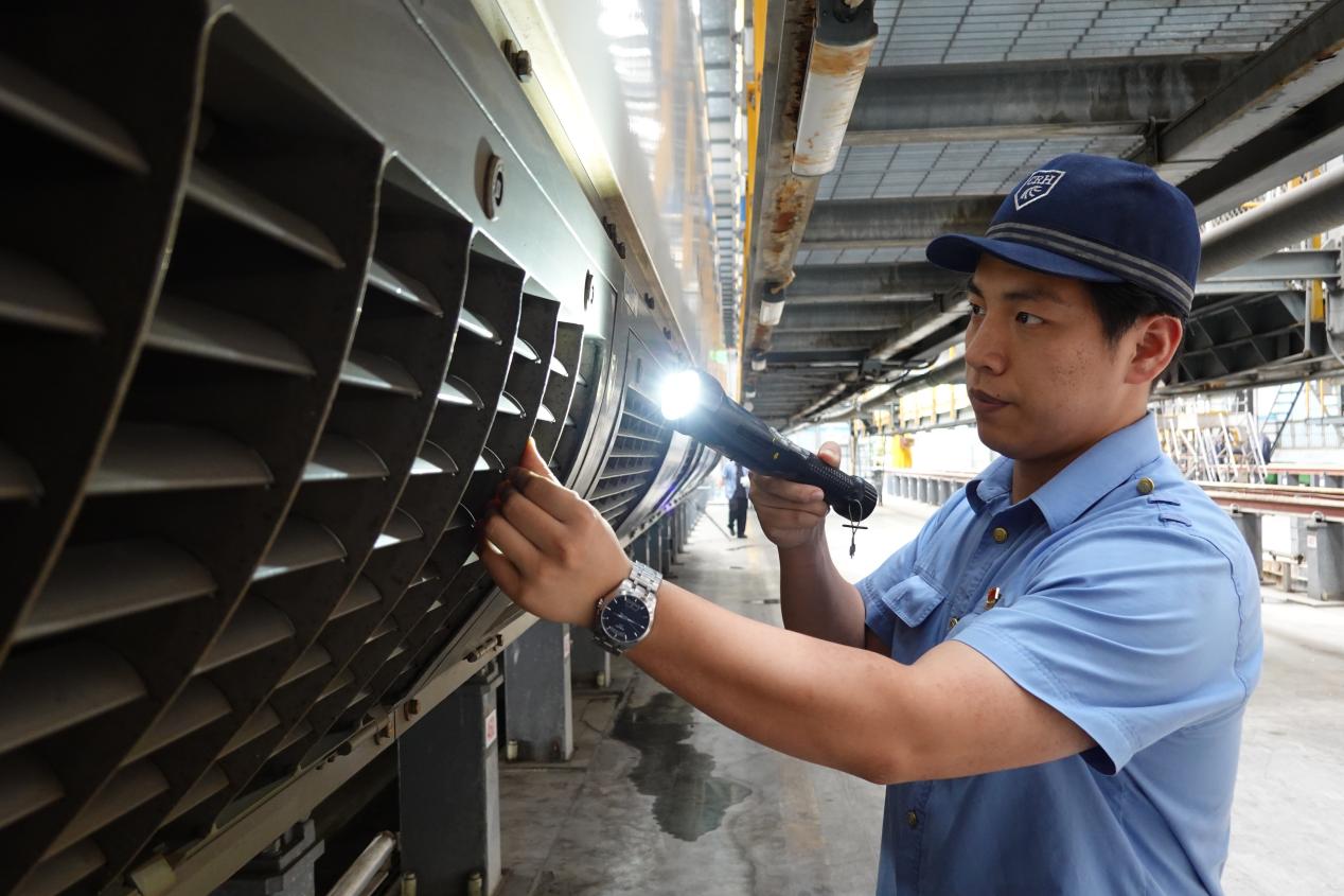 图为动车组机械师进行探伤作业。(邓子圣 摄)