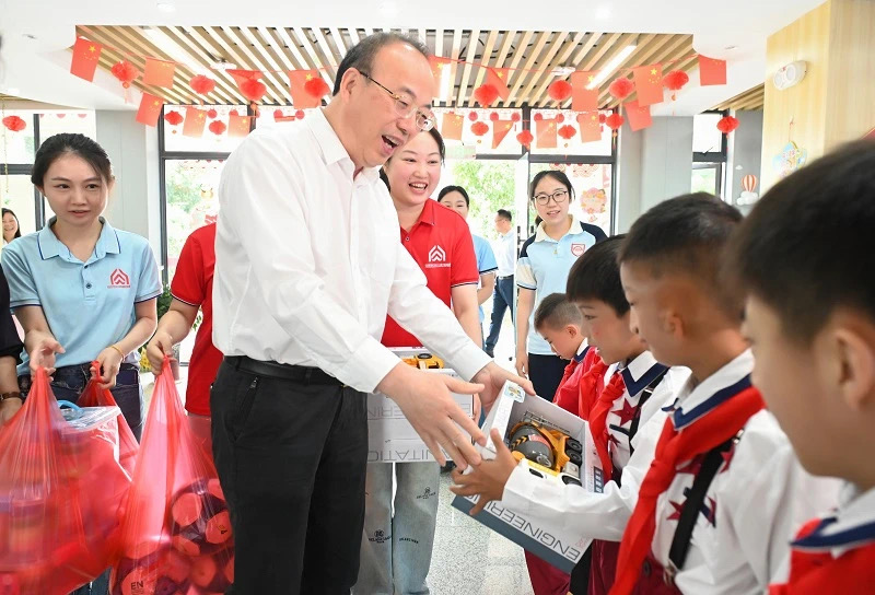 在安庆市社会(儿童)福利院,张祥安实地查看了心理疗愈区、医疗康复区、教学区等院内场所,详细了解孩子们的生活、学习、康复情况,亲切看望孤残儿童,同时对福利院的工作给予高度肯定,对辛勤付出的工作人员表示感谢。“六一”将至,孩子们正在排练节目。“祝你们‘六一’儿童节快乐!”张祥安来到孩子们中间,为他们送上精心准备的礼物,现场洋溢着浓浓的温情。张祥安指出,孤残儿童是社会的弱势群体,更需要党委政府和全社会的关心关爱。希望每一位工作人员怀着真心真情真爱,精心呵护照顾好每一位孤残儿童,让他们在同一片蓝天下快乐成长,使他们将来能够更好地融入社会。菱北中心幼儿园新园区是一座新建的现代化园所,场地开阔、配置完善。张祥安分别来到操场、生活体验馆、音体室、科学发展馆、美工室、小班教室、食堂和多功能报告厅,饶有兴致地观看小朋友的演出排练和手工作品,俯身和小朋友们热情互动,祝孩子们节日快乐、学习进步、茁壮成长。张祥安指出,园所硬件条件好了,教育教学水平也要跟上,要加强教师队伍建设、优化课程设计,让孩子们健康、快乐成长。