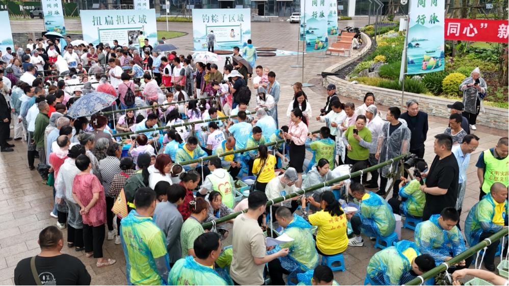 巴蜀同脉、文明同行。5月27日,“渝邻同心”新时代文明实践共建暨“我们的节日·端午”欢乐农家大赛,在川渝高竹新区政务服务中心广场举行。四川省邻水县、重庆市渝北区两地村民齐聚一堂,共育文明乡风,以赛民俗、包粽子的传统农家大赛,欢庆端午佳节。