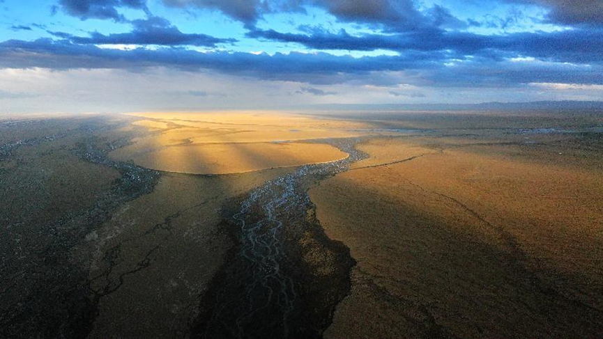 作品简介:画面中,在阳光的照射下,土地呈现出明暗交错的光影效果。河流蜿蜒而过,天空中云层笼罩,展现出羌塘雄浑壮阔的自然风貌。