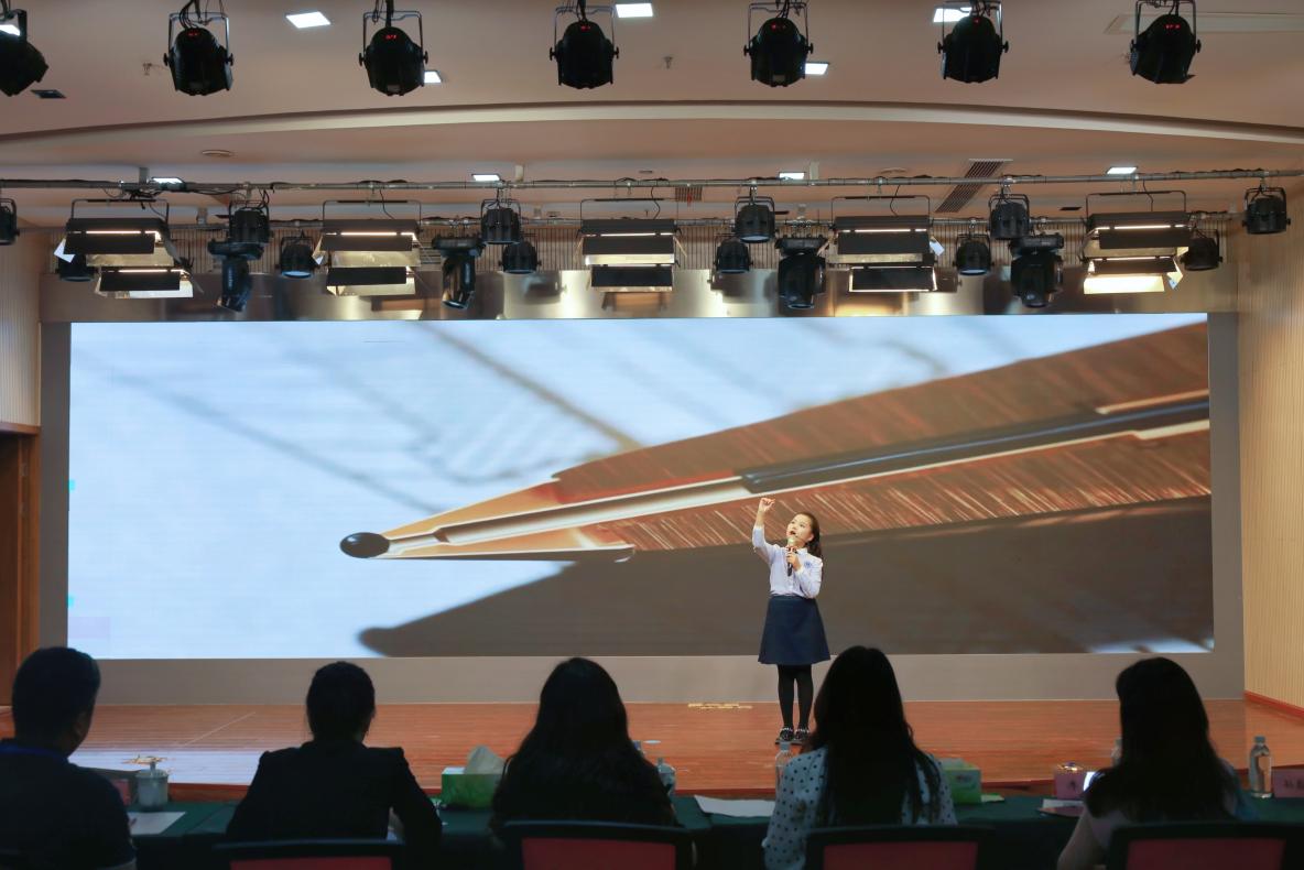 来自重庆两江新区博雅小学校的8岁学生张诗涵把比赛推向高潮,这位20号小选手生动讲解圆珠笔书写原理,稚嫩却专业的表述赢得阵阵掌声。