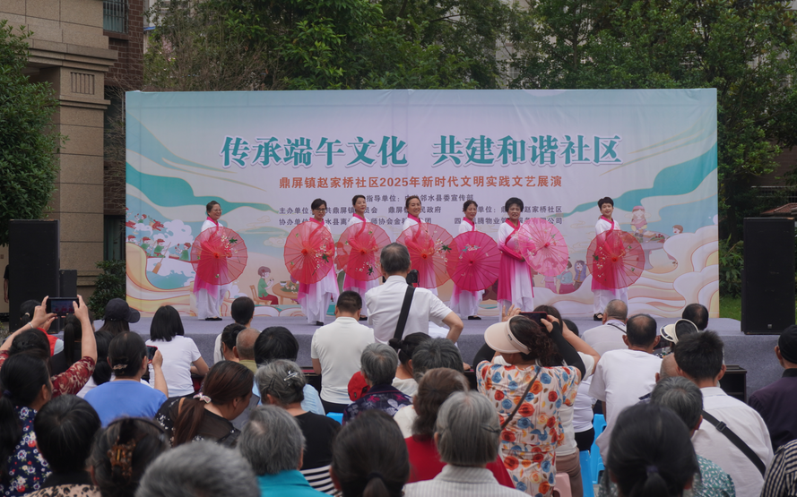 赵家桥社区以“传承端午文化·共建和谐社区”为主题,邀请县离退休教师协会金秋艺术团开展文艺展演,歌舞、小品、魔术轮番登场,在艺术熏陶中弘扬传统文化。