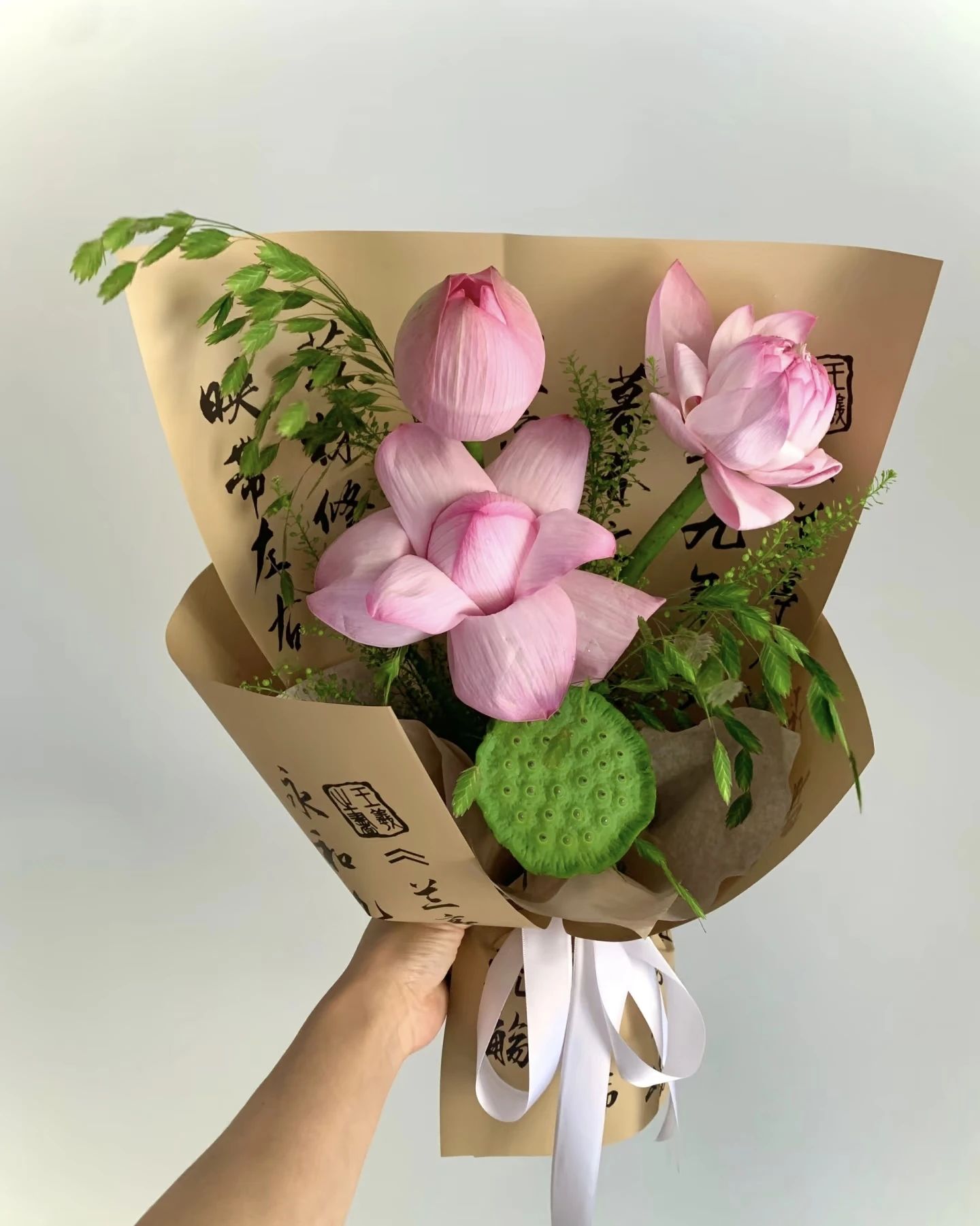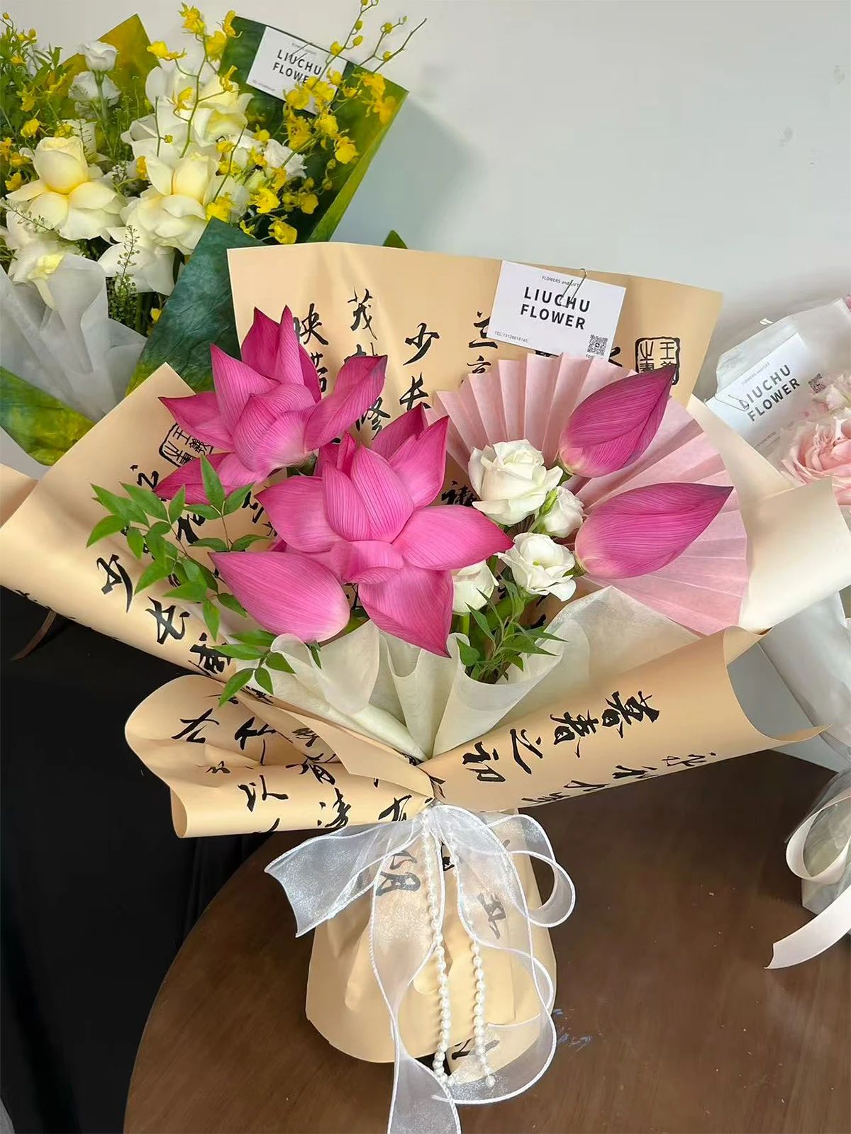 “莲”与“连”谐音,用莲花做成花束象征“好运连连”。这是六初花艺工作室近年推出的以莲花为主花材的花束,收获了多个好评。张英接触过太多这样的顾客——憨厚的父亲、温柔的母亲、慈爱的长辈、友爱的兄弟姐妹……“收到这些花束的孩子,都是带着满当当的爱启程的,无论高考成绩如何,他们都拥有着被爱的、幸福的人生”。