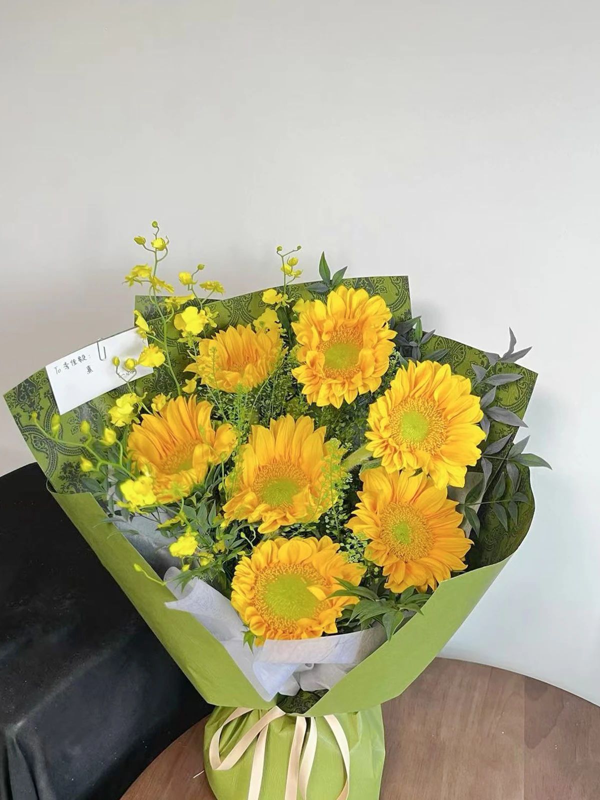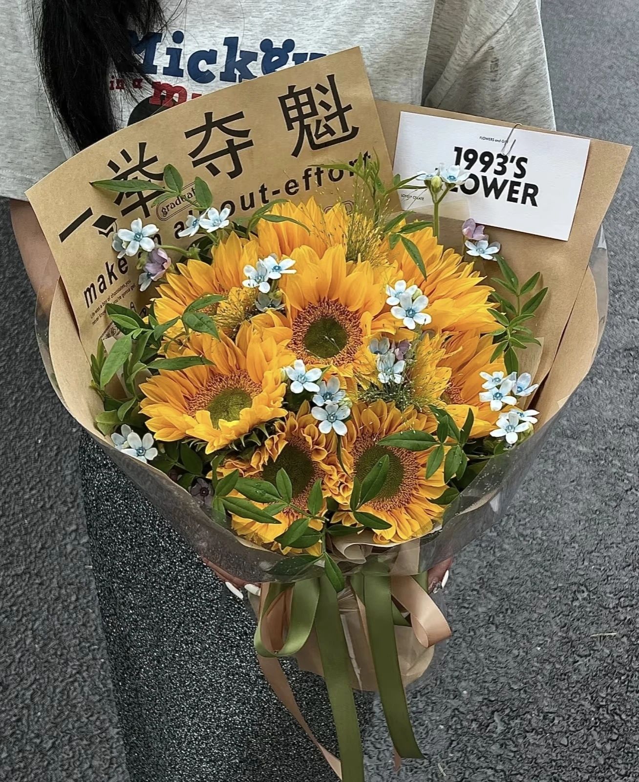 踏进斗南花市,象征“一举夺魁”的向日葵花束占据高考花束畅销榜榜首。主花材为热烈的向日葵,搭配上香槟玫瑰,佐以“金榜题名”“一举夺魁”等花艺包装纸,共同铸就了这份高考经典花束,寄托着父母师长愿少年如葵,向阳盛放,终得桂冠的美好祝愿。“每年高考这几天,这样的花束我们就能卖出300多束。”花忆美学花店的白店长向记者介绍。