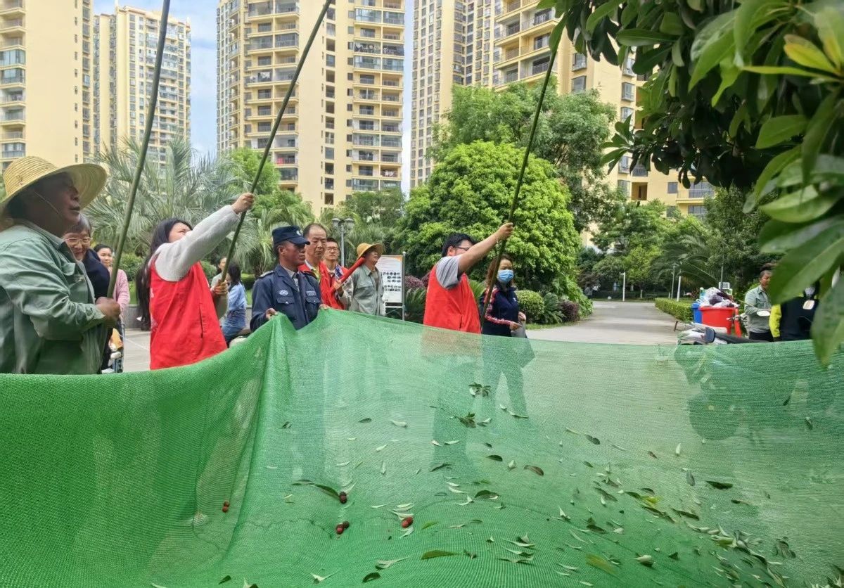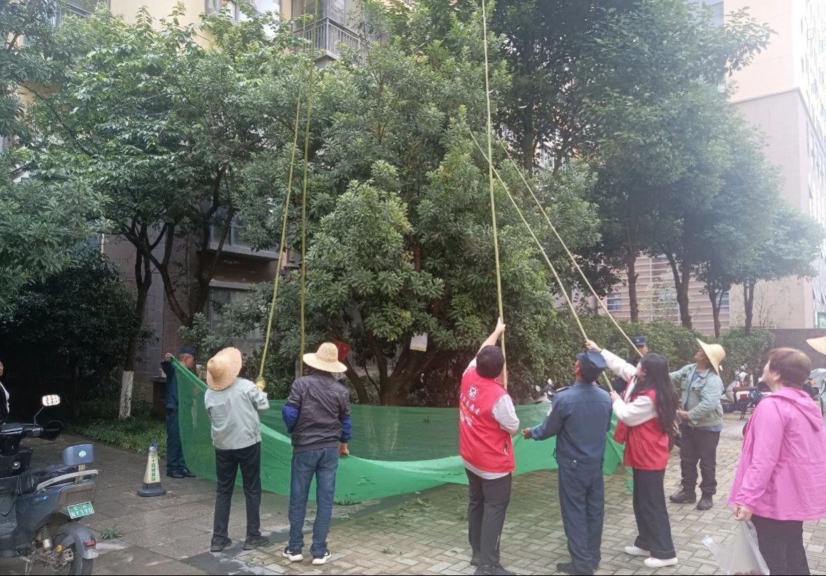 活动当天,花香满径小区的杨梅树下化作一片热闹的海洋。圆润饱满的杨梅裹着晶莹果霜,在阳光下折射出诱人的光泽,紫红的果肉仿佛在枝头跳跃。社区工作人员提前准备好竹篮、竹竿、防护手套等工具,细致地在杨梅树下设置安全提示牌,服务保障采摘活动安全进行。