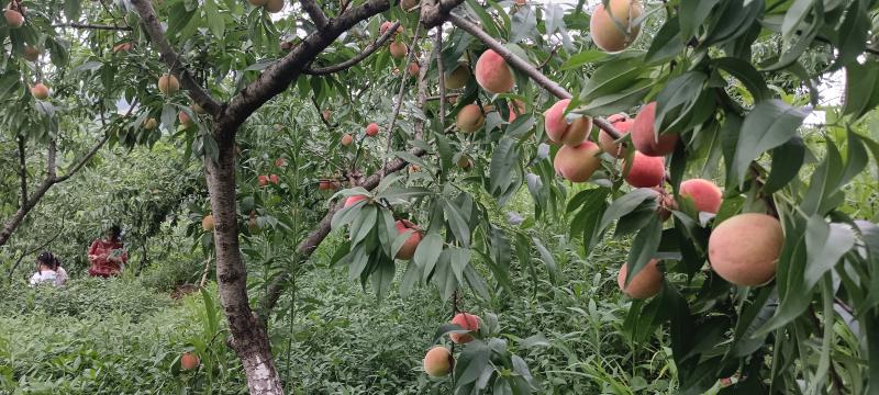 走进沿山势而建的果园,成片的桃林郁郁葱葱,满园的香桃挂满枝头,空气中弥漫着清甜的果香。三三两两游客穿梭其中,手提果篮,小心翼翼地采摘着成熟的桃子。