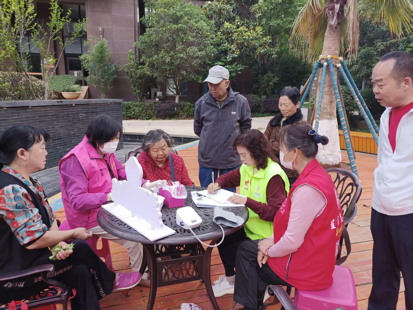 朝云社区舞蹈队、合唱团、腰鼓队、敬老服务队等团队以“认领任务+团队协作”模式成为本次挑战赛的“主力军”。舞蹈队变身“环保铁娘子”,连续两周开展小区卫生死角清理行动,依托医护专长组建义诊队,带领队员系统学习测血糖、量血压、测尿酸等医疗健康服务技能,为小区居民提供“三高”义诊服务;合唱团发挥组织优势,开展小区楼栋消防安全排查,共同为居民的居家安全“保驾护航”;腰鼓队,敬老服务队等各团队“比学赶超”,充分展现了居民自组织在社区治理中的创新力与凝聚力。
