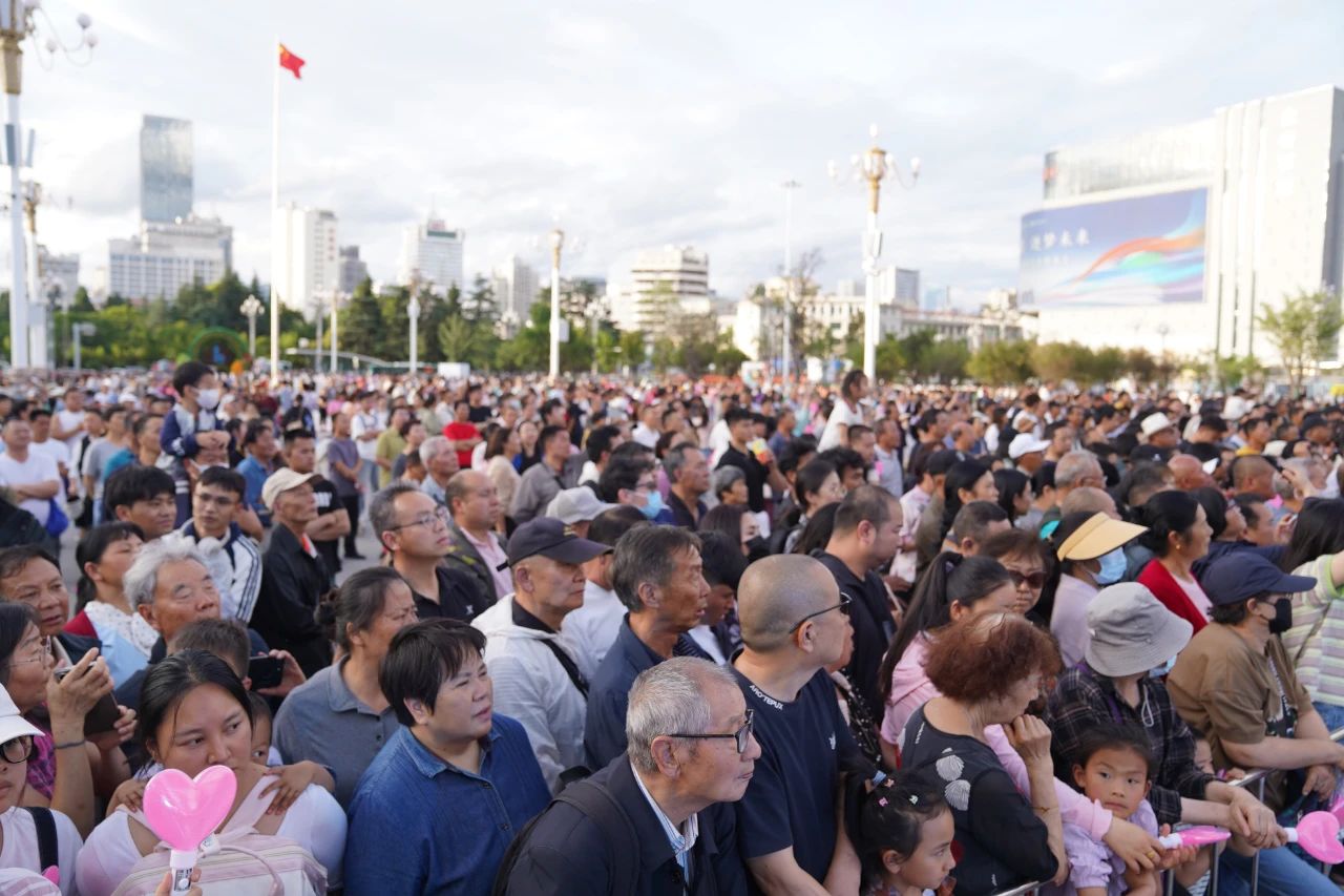 随着天色渐黑,市民群众在尚义街乐队的歌声和旋律中,聆听公安故事,演出过程中尚义街乐队与现场观众热情互动,并为积极参与互动的市民送上惊喜礼品。广场主舞台上,“回眸经典、唱响未来——时光音乐会”带领现场市民一同穿越时光隧道,与年轻歌手共唱老歌新韵,和银发长辈挑战热歌律动。当云南民歌串烧的旋律响起,瞬间将现场气氛推向高潮……紧接着,百人声浪汇聚,千人传唱民歌,激昂的旋律扩散开来,形成一片热烈欢腾的海洋。