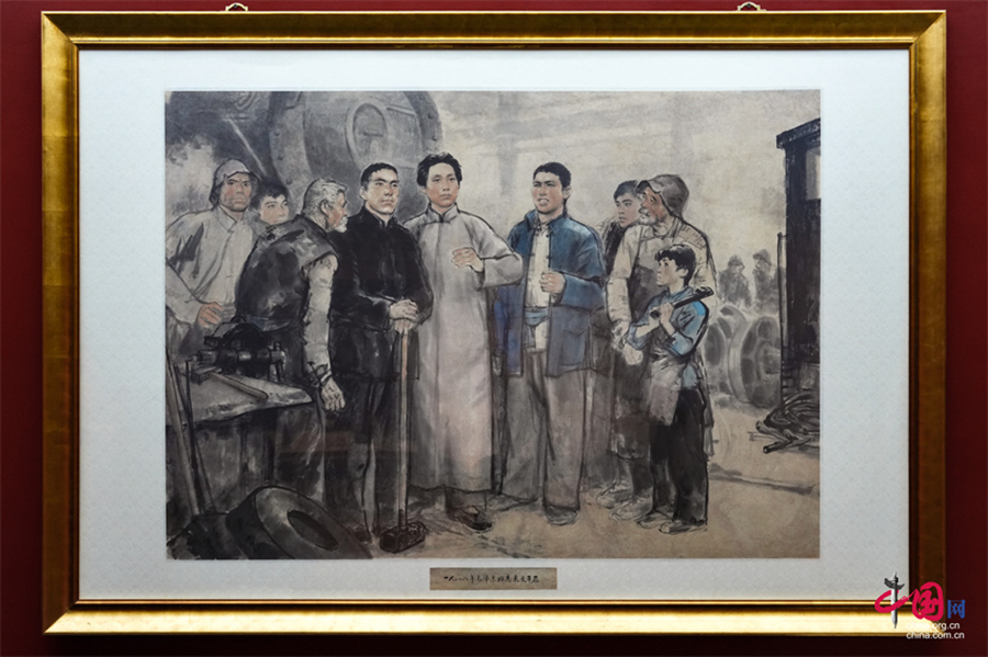 ▲长辛店二七纪念馆“北方的红星”展品:画作《一九一八年毛泽东同志来长辛店》。中国网记者 郑伟 摄
