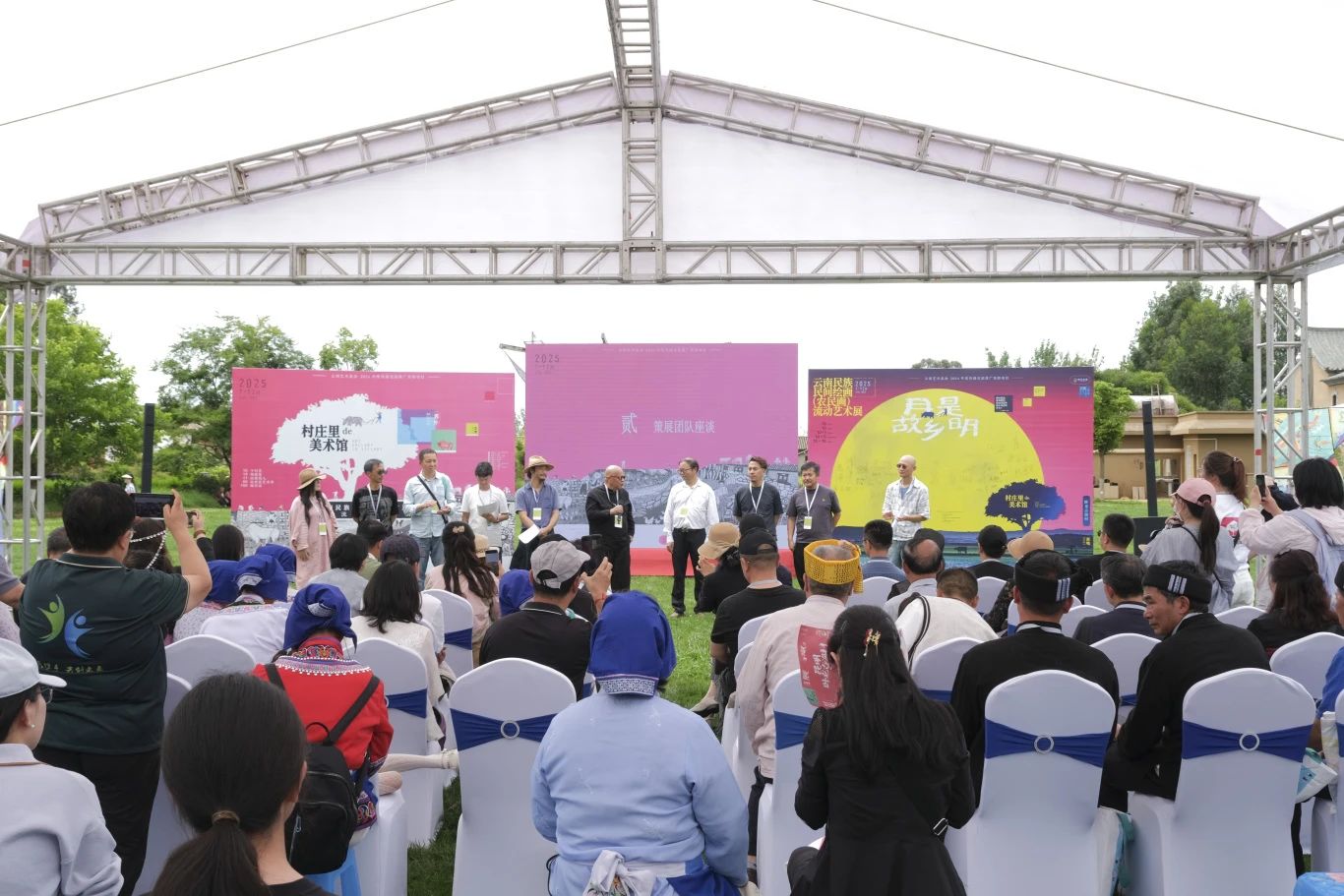 7月5日,呈贡卧龙古渔村成为一场艺术与乡土深情对话的舞台,“界外·在地 村庄里的美术馆——云南民族民间绘画(农民画)流动艺术展”项目首场主题展“月是故乡明”在此开幕。