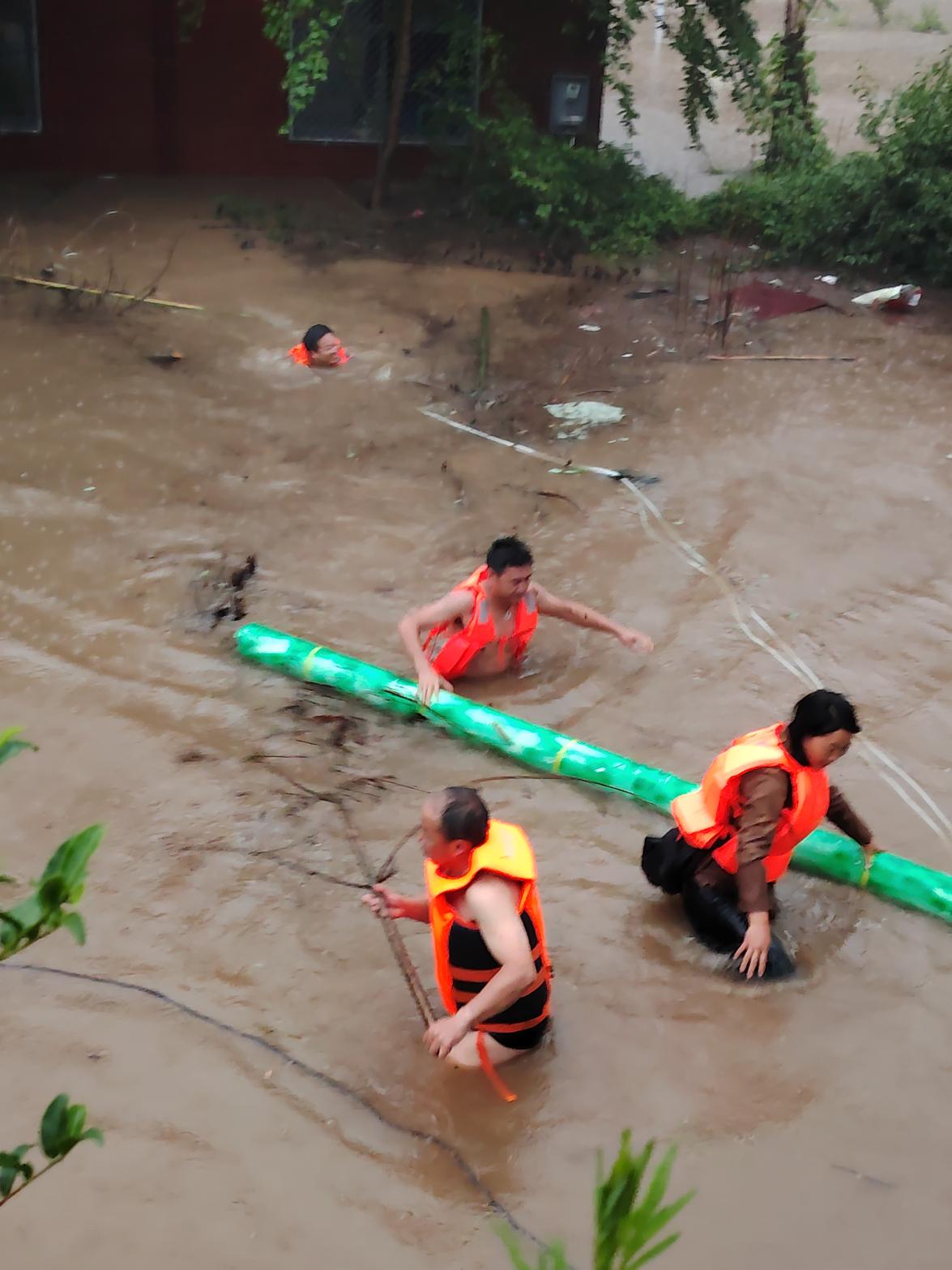 在镇党委统一调度和村党支部现场指挥下,一支由村党员干部组成的救援突击队迅速集结。救援队冲破雨幕,橘红色救生衣的光芒刺破黑暗,也照亮了罗菊琴泪流满面的脸庞。面对不断上涨的河水,面对齐腰深的湍急水流和漂浮的杂物,队员们就地取材,将竹筏的仿真竹竿扎成简易救生筏,套上救生衣,腰系安全绳,毅然冲入洪流。
