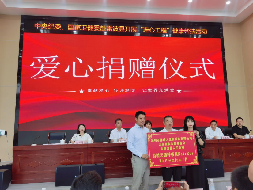 北京康和公益基金会联合深圳市伟晴大健康科技有限公司(以下简称:伟晴),向雷波县人民医院捐赠无创呼吸NatrRes 30 Premium 5台,用于提升该县基层医疗机构的呼吸疾病救治能力,尤其是患有睡眠呼吸暂停综合征、慢性阻塞性肺疾病等呼吸疾病的患者提供更及时、专业的治疗支持。