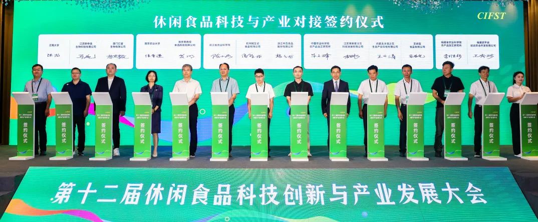 在产业高质量发展的进程中,科技成果与产业的对接融合显得尤为重要。本届大会为参会代表提供了多项对接、交流的机会,包括组织召开了“专家与企业”座谈会,促成9项休闲食品科企合作项目并在开幕式上进行签约等。