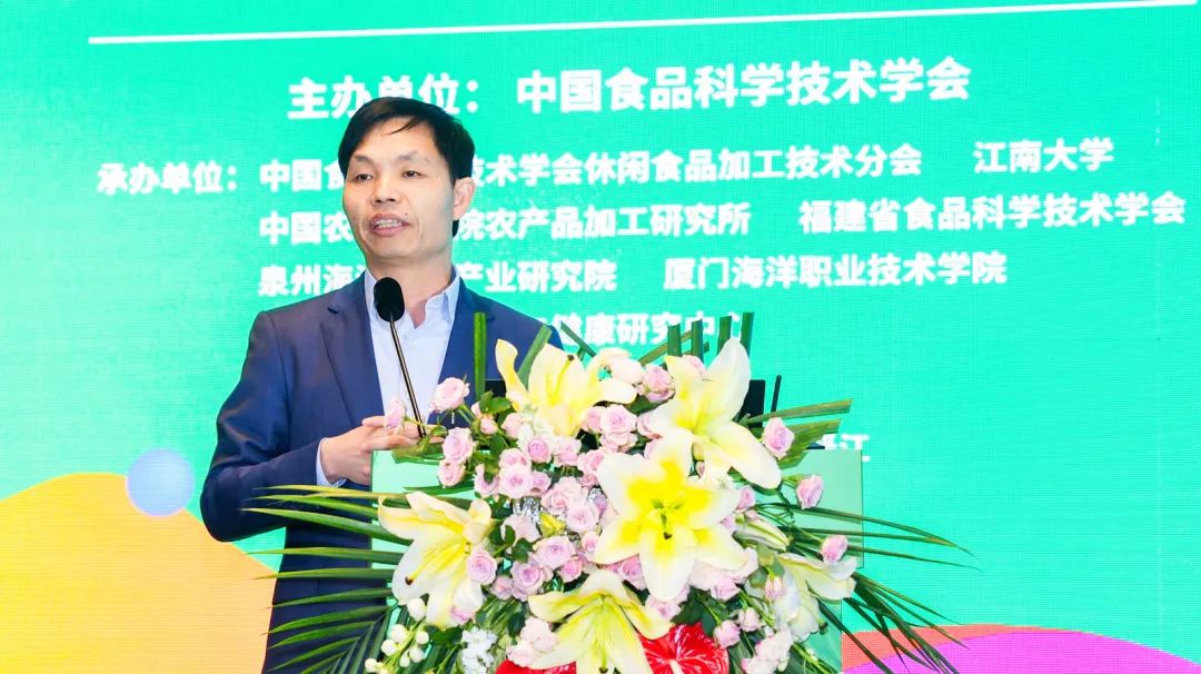 7月19日,第十二届休闲食品科技创新与产业发展大会在福建晋江召开。此次会议由中国食品科学技术学会(CIFST)主办,由CIFST休闲食品加工技术分会、江南大学、中国农业科学院农产品加工研究所、福建省食品科学技术学会、泉州海洋生物产业研究院、厦门海洋职业技术学院、福州大学食品营养与健康研究中心等单位共同承办。中国工程院院士、中国食品科学技术学会休闲食品加工技术分会主任委员金征宇,中国工程院院士、中国海洋大学教授薛长湖,中国食品科学技术学会名誉副理事长潘迎捷教授,中国食品科学技术学会常务副理事长邵薇教授,中国食品科学技术学会副理事长、中国疾病预防控制中心营养学首席专家丁钢强教授等专家学者及企业代表参加会议。