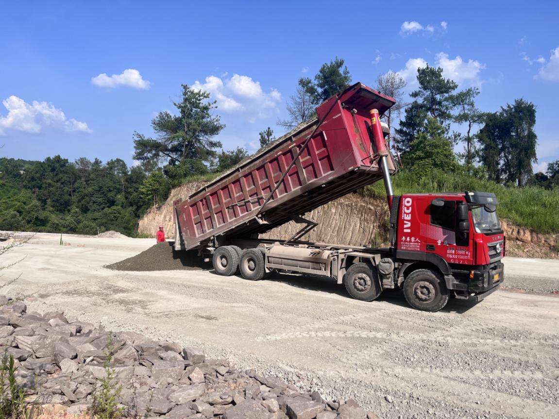 七月的邻水北出口连接线工程施工现场,热浪与干劲交织。运输车在便道上来回穿梭,摊铺机均匀摊铺水泥稳定层料,紧随其后的双钢轮振动压路机反复作业,将松散物料压实。在总长3.86公里的施工线上,12台大型机械协同作业,工人轮班施工,各道工序紧密衔接,整个作业面高效推进,现场一派火热建设景象。