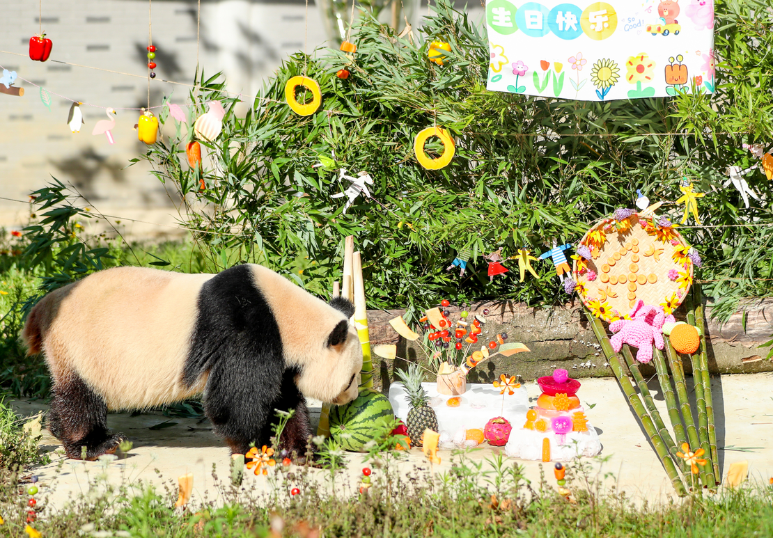 四川广安:大熊猫“林溪”“一家”在华蓥山迎来生日会