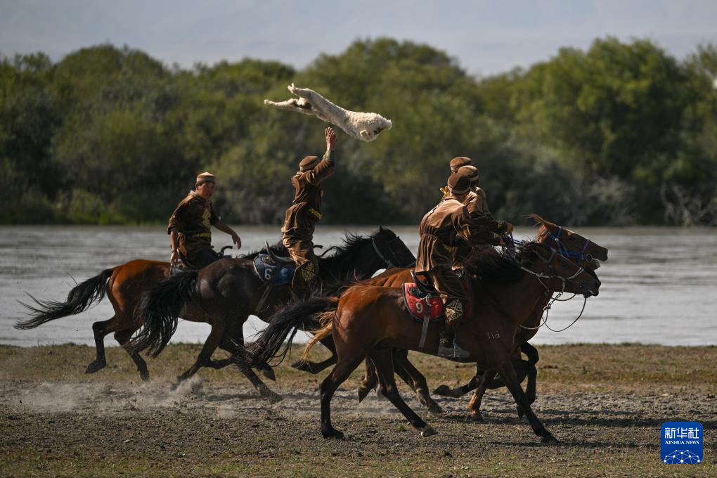 7月29日,骑手在新疆伊犁哈萨克自治州昭苏县天马旅游文化园表演叼羊。