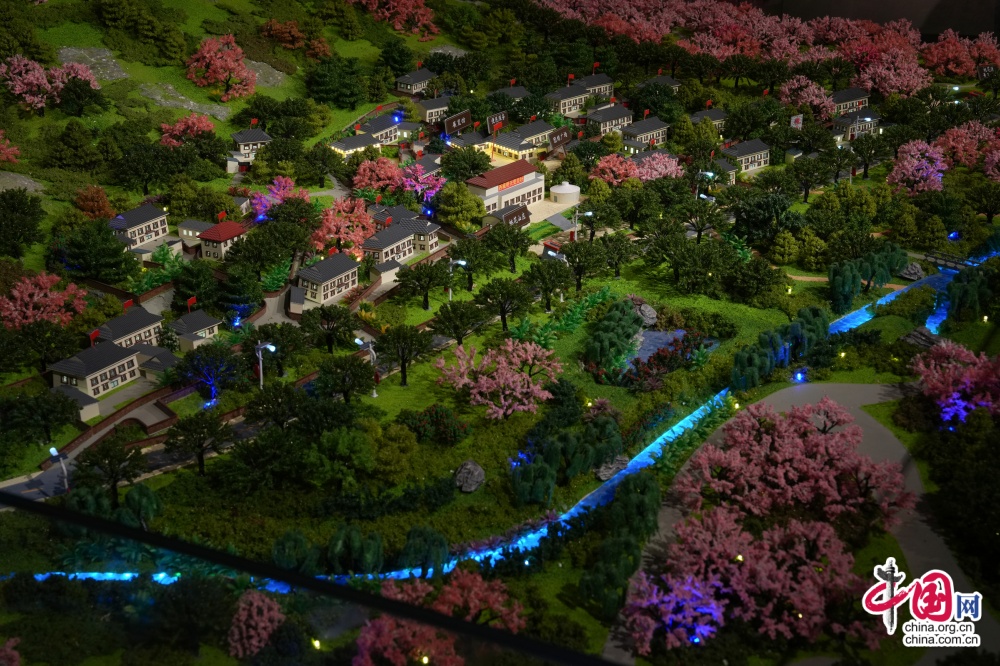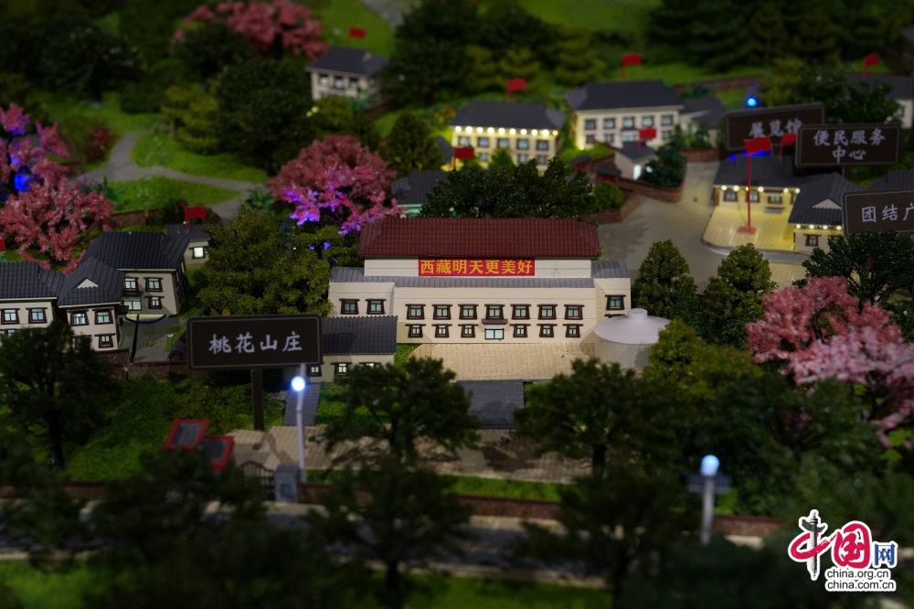▲嘎拉村“团结颂”主题教育展览馆·嘎拉村沙盘模型(局部)。中国网记者 郑伟 摄