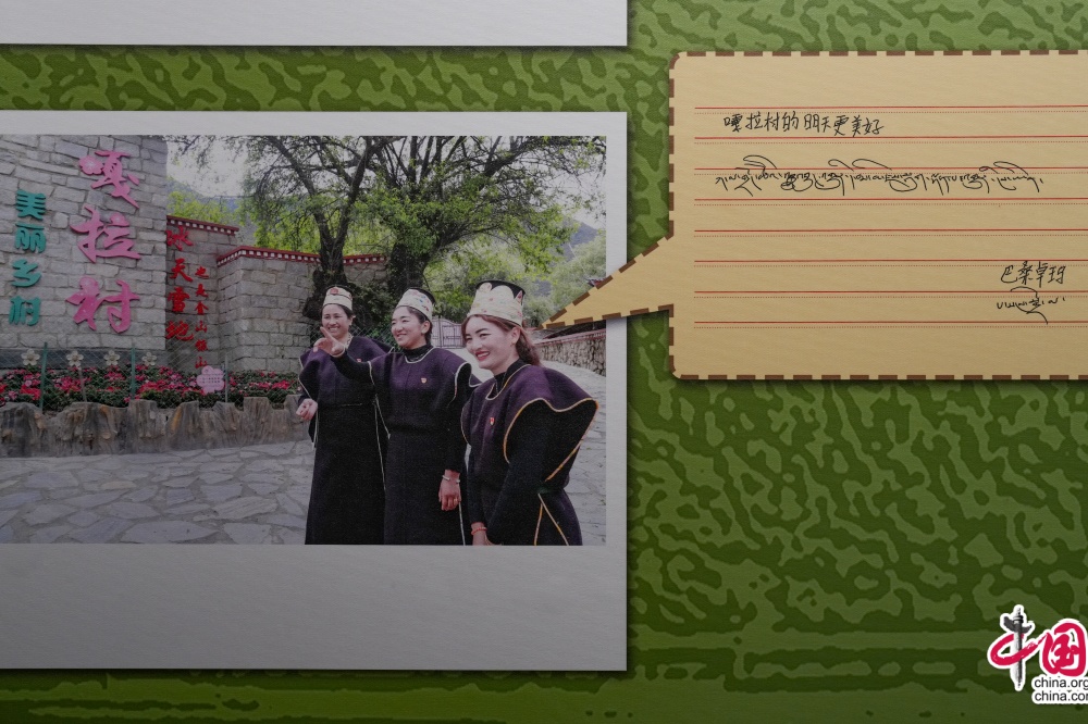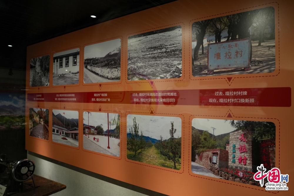 ▲嘎拉村“团结颂”主题教育展览馆·内景。中国网记者 郑伟 摄