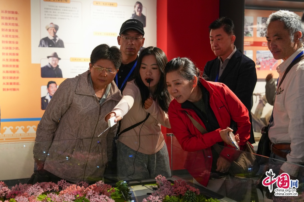 ▲采访团成员在嘎拉村“团结颂”主题教育展览馆参观。中国网记者 郑伟 摄