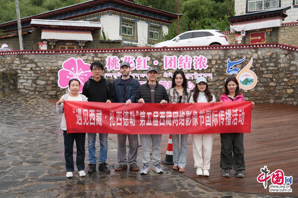 ▲“遇见西藏·扎西德勒”第五届西藏网络影像节国际传播活动媒体团在嘎拉村合影。中国网记者 郑伟 摄