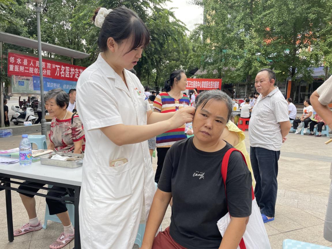 “阿姨,您的血压稍微偏高,平时饮食要注意少盐少油啊……”8月21日,四川省广安市邻水县人民医院与邻水县北城社区卫生服务中心联合重庆医科大学附属第二医院(重医附二院)的专家医疗队,在邻水龙腾御景小区开展了“万名医护走基层 千村百镇送健康”惠民义诊活动。这场跨越省界的“健康接力”,不仅为社区居民送来了健康和便利,更传递了浓浓的川渝协作之情。