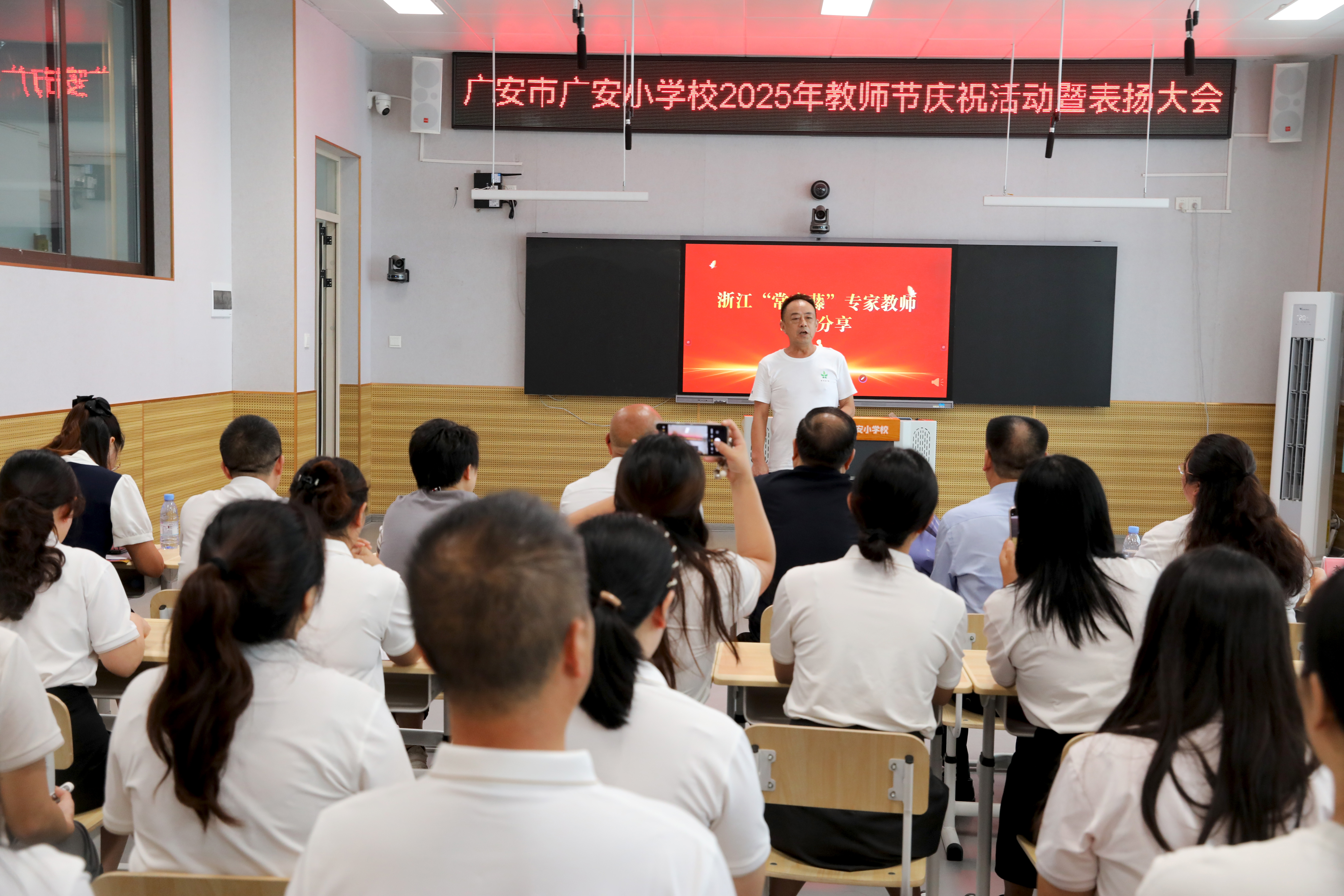 “值此教师节之际,我想作为一个老教师,给全体在职教师分享我自己在教育生涯当中的点滴体会,我觉得教师这个职业应该做好三个字。第一个是要有爱心,对每一位学生不放弃;二是要有责任心,规划我们的职业生涯,上好每一堂课;第三个要付诸于我们自己的实际行动中去,做到‘行’,要践行教师的职业操守和规范。”9月9日下午,四川省广安小学校会议室里,桂花清香透过窗隙弥漫,庆祝教师节大会正在举行。来自浙江的“常青藤”计划支教老师吕伯海,满脸笑意地向着年轻老师分享自己的教育经验。