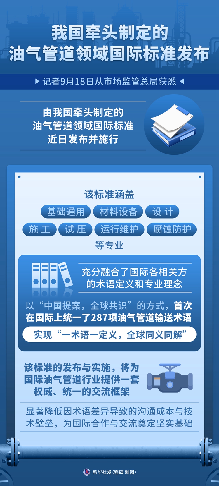 记者18日从市场监管总局获悉,由我国牵头制定的油气管道领域国际标准近日发布并施行。