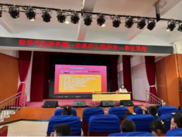 邀请法律服务员走进松华,开展《中华人民共和国未成年人保护法》专题宣讲6次,结合涉未成年人刑事案件以案释法,讲解刑事责任年龄、校园欺凌危害及应对方法,强调预防未成年人犯罪的四大措施,引导学生不做“小霸王”“旁观者”,争当“防卫者”,勇敢向欺凌说“不”。通过强化师生的法治意识与自我保护能力,为未成年人健康成长织密法治“防护网”。