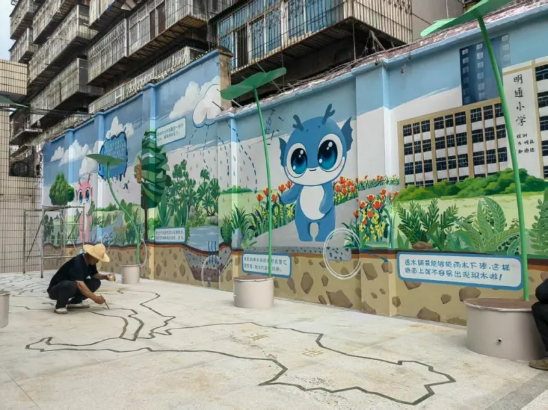 初秋的昆明,细雨润物,走进盘龙区明通小学,不见积水,但闻笑语。彩色透水跑道上,孩子们奔跑嬉戏;雨水花园旁,稚嫩的身影正凝神观察叶片上滚落的水珠,这座曾经“逢雨即积”的校园,如今已然成为一座能吸水、渗水、蓄水的“生态海绵乐园”。