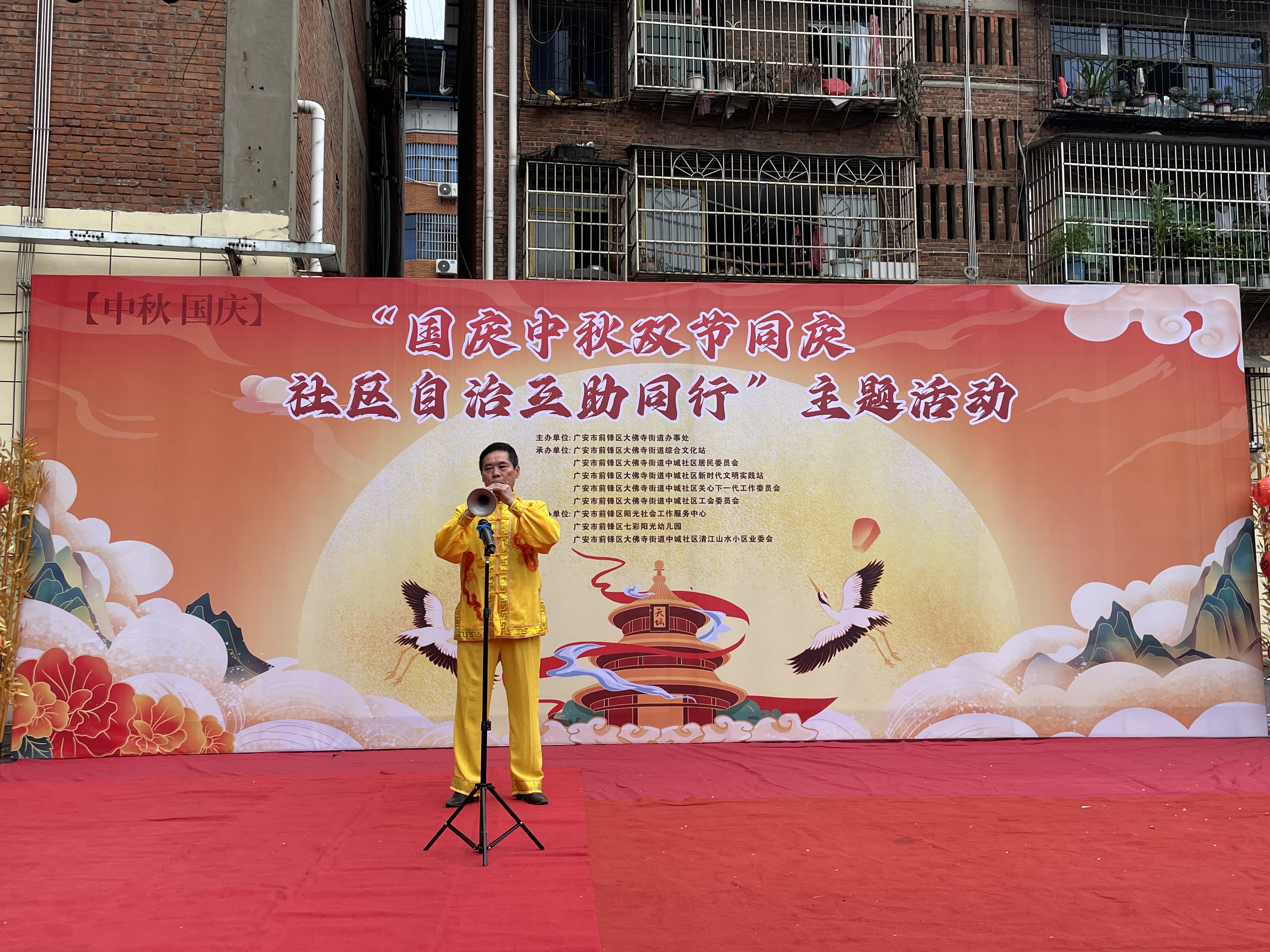 9月28日,广安市前锋区阳光社会工作服务中心联合大佛寺街道办事处,大佛寺街道综合文化站,大佛寺街道中城社区新时代文明实践站,大佛寺街道中城社区关心下一代工作委员会,大佛寺街道中城社区工会委员会,中城社区社工室,各志愿服务队,在清江山水小区开展“国庆中秋双节同庆 社区自治互助同行”主题活动。活动以“社区引导、居民共建”为核心,让居民在参与中感受自治力量,在互动中凝聚邻里温情。