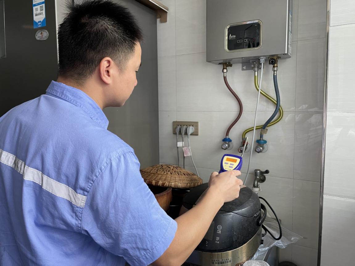 “刘老师,您家这段燃气软管已经有些老化发硬了,建议尽快更换成更安全的金属波纹管。”在用户刘涛家的厨房里,安检员一边用可燃气体检测仪仔细检查阀门和接口,一边耐心解释。他不仅查验了灶具和热水器,还俯身检查了橱柜深处的管道状况,不放过任何一处隐患。