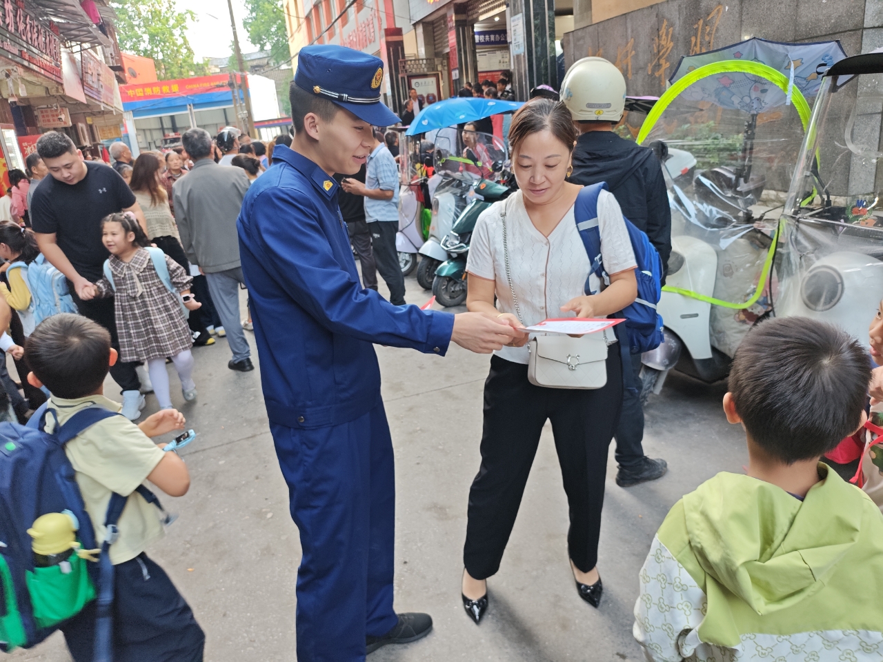 “各位家长,家庭防火要牢记‘三清三关’……”10月22日下午,在四川省广安市邻水县多所小学、幼儿园门口,一场别开生面的消防安全宣传正在学生放学的热闹时段中有序开展。