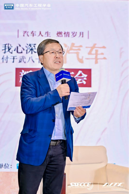 “老友面对面” 环节,宛如一场温暖的时光聚会。中国汽车工程学会副理事长、清华大学汽车产业与技术战略研究院院长赵福全担任主持,与付于武先生一同围坐的,是东风汽车集团有限公司原董事长竺延风、中国动力电池产业创新联盟理事长董扬、吉林大学汽车研究院院长管欣、深圳市航盛电子股份有限公司董事长杨洪 —— 这些与付老并肩走过数十年的老友,带着回忆与敬意,打开了话匣子。