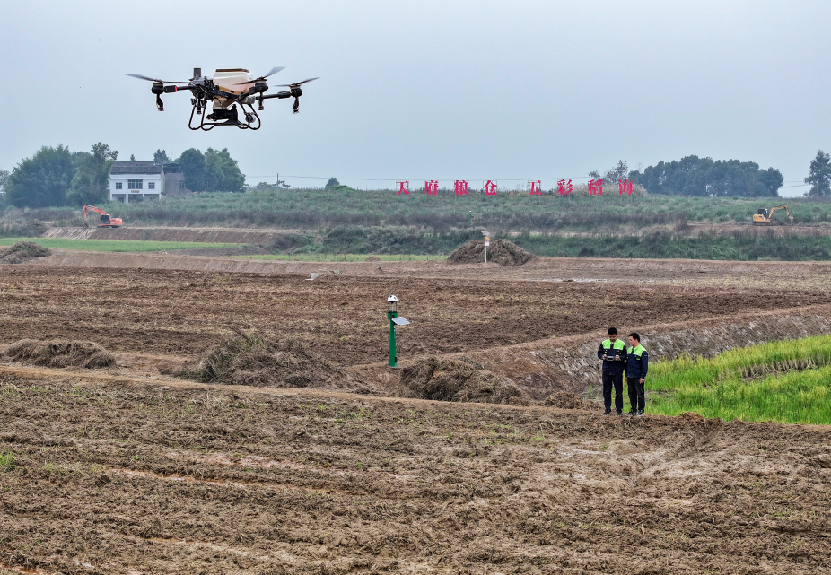 晚秋时节,四川省华蓥市华龙街道东方村刚忙完秋收的农民,不误农时,充分盘活土地,及时实施稻油轮作,利用无人机为刚收割完水稻的农田播种油菜,为粮油增收打下基础。(邱海鹰)