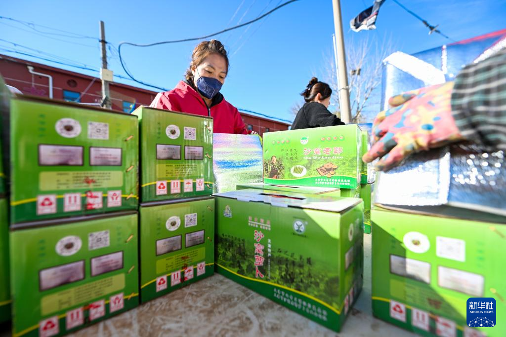 11月20日,在天津市西青区辛口镇,农民在打包准备发运的沙窝萝卜。