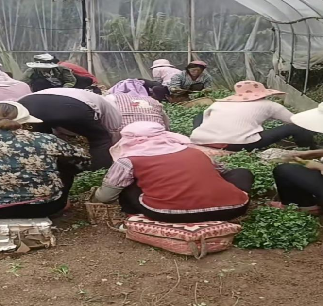 花窝村共有572户1924人,劳动力资源丰富。劳动力外流是许多乡村面临的普遍困境,但花窝村积极探索并成功实践了一条“离土不离乡”的就业新路径。据统计,该村像李大姐这样活跃在“家门口”的务工人员达257人,覆盖121户家庭。与以往跨省跨市的长距离迁徙不同,他们的务工半径紧密围绕花窝村及其周边区域,主要集中在杨林镇工业园区、本村及邻村的农业合作社、特色种植基地等。“我们的‘远方’,就是镇上的园区、村里的合作社,以及周边的大棚和农田。”一位务工村民的朴素话语,精准概括了这种就业模式的显著特征——空间上的就近性与心理上的归属感并存。