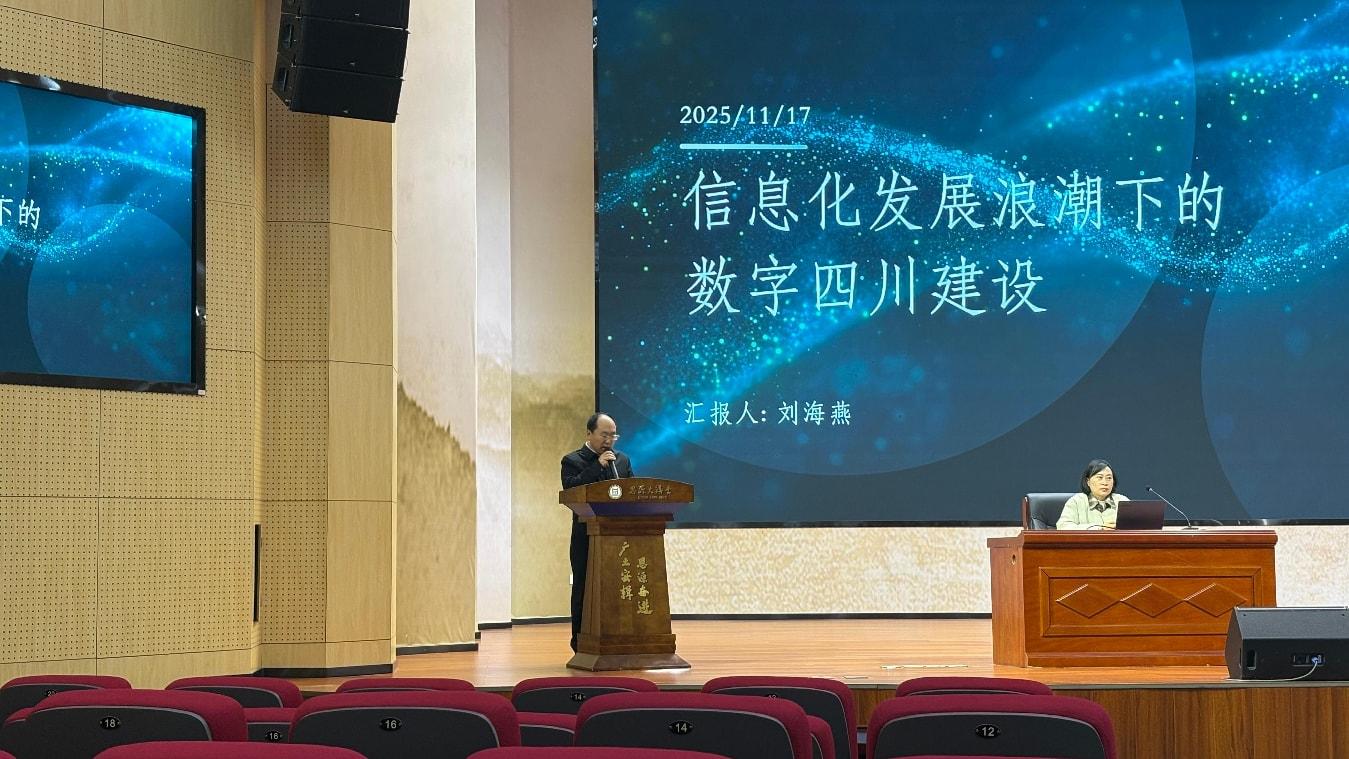 会上,主办方特别邀请到省委网信办信息化协调处处长刘海燕作专题授课。刘海燕以“信息化发展浪潮下的数字四川建设”为主题,结合自身深厚的理论积淀与丰富的实践经验,系统阐释了信息化、互联网及人工智能的发展趋势,深入解读了“数字四川”建设规划的核心内容,精准剖析了当前广安在信息化推进过程中面临的机遇与挑战,并就如何压实信息化工作责任、破解实践难题给出了针对性建议。其授课内容兼具理论高度、实践深度与指导温度,为参会人员带来了一场高质量的知识盛宴。