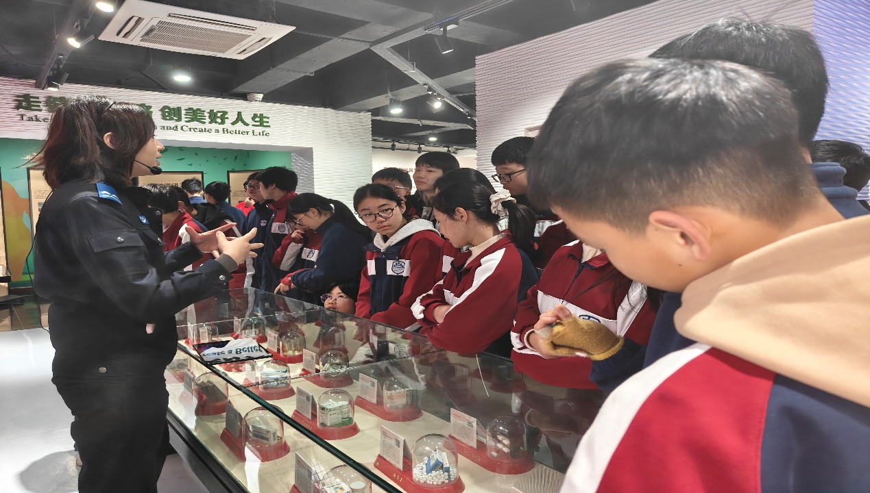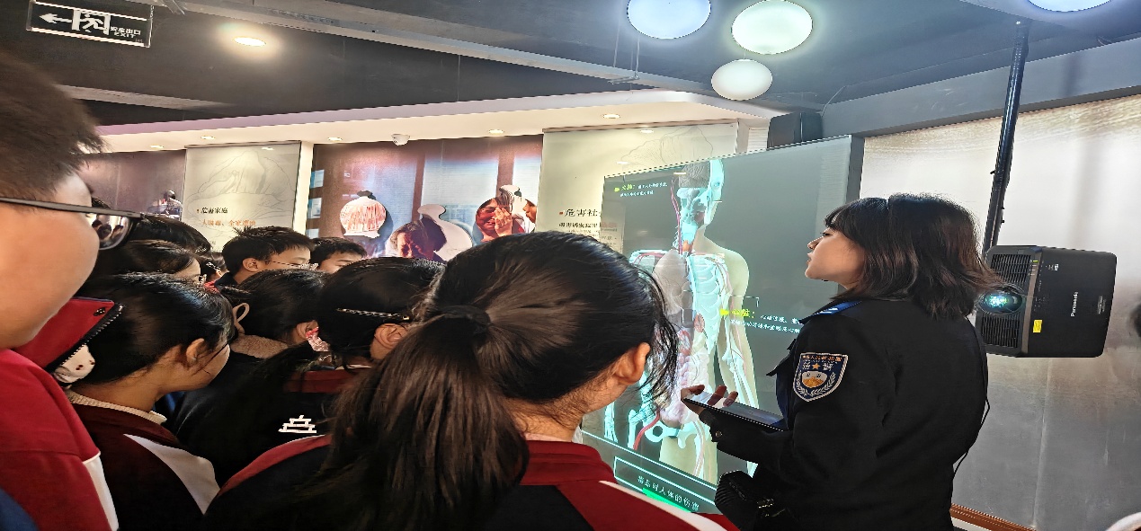 在毒品模型展柜前,大家第一次近距离看到海洛因、冰毒、摇头丸及伪装成“奶茶”“跳跳糖”等的新型毒品模型。讲解员详细介绍了它们的特征与危害,改变了同学们对毒品的模糊认知。
