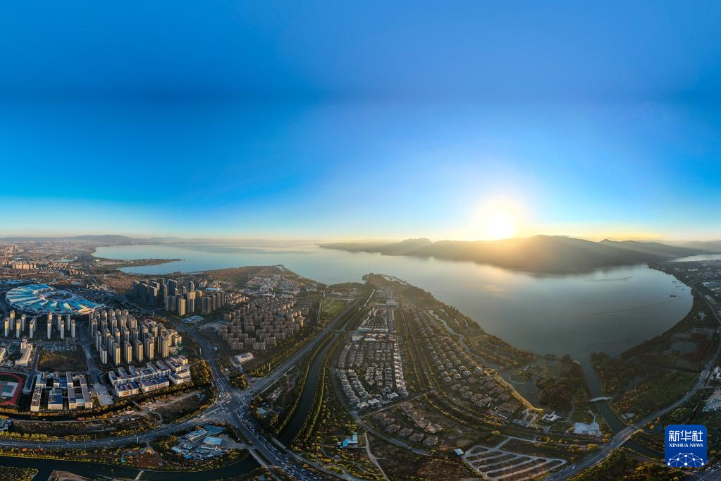 12月10日拍摄的滇池一景(无人机全景照片)。