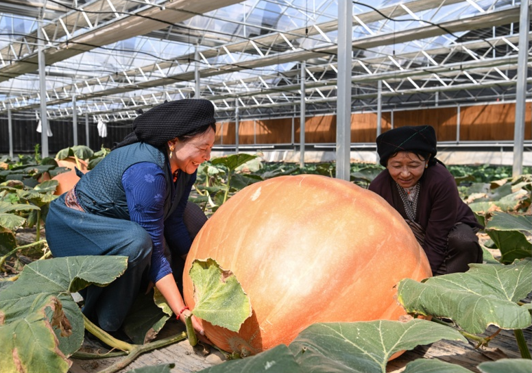 The harvest of giant pumpkins in Maldrogungkar County of Lhasa. Photo by Gonggar Lesong
