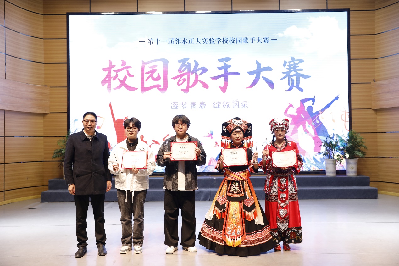 本次大赛由学校音乐组专业教师组成评委团,从主题表达、演唱技巧、舞台表现、仪容仪表四个维度进行公正严谨的评审。经过激烈角逐,张晨阳深情演绎的歌曲《沧海一声笑》、范欣炜活力唱响的歌曲《丑八怪》、潘昭言婉转诠释的歌曲《金呐银儿锁》、徐弋涵热血演绎的歌曲《壮歌声声啊嘞嘞》凭借扎实的唱功与动人的舞台表现脱颖而出,荣获“实力唱将”称号;此外,大赛还评选出“人气歌手”5名、“潜力歌手”7名,充分展现了正大学子的艺术风采与青春活力。学校领导为获奖选手颁发奖杯及荣誉证书,鼓励全体同学将这份对音乐的热爱与坚持融入学习生活,在辞旧迎新之际,怀揣梦想勇毅前行,在青春的赛道上不负韶华、不负时光。