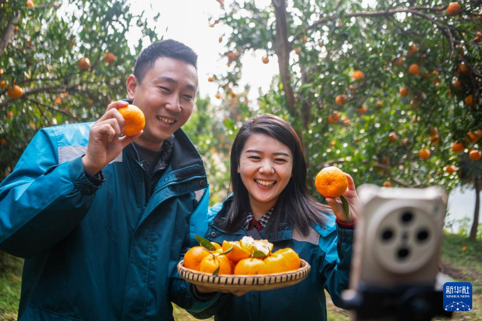 近日,重庆市黔江区阿蓬江沿岸数千亩柑橘林迎来丰收季,当地通过举办采摘体验、线上直播等活动,拓宽柑橘销售渠道,推动柑橘出村进城,有效促进农民增收和乡村产业振兴。