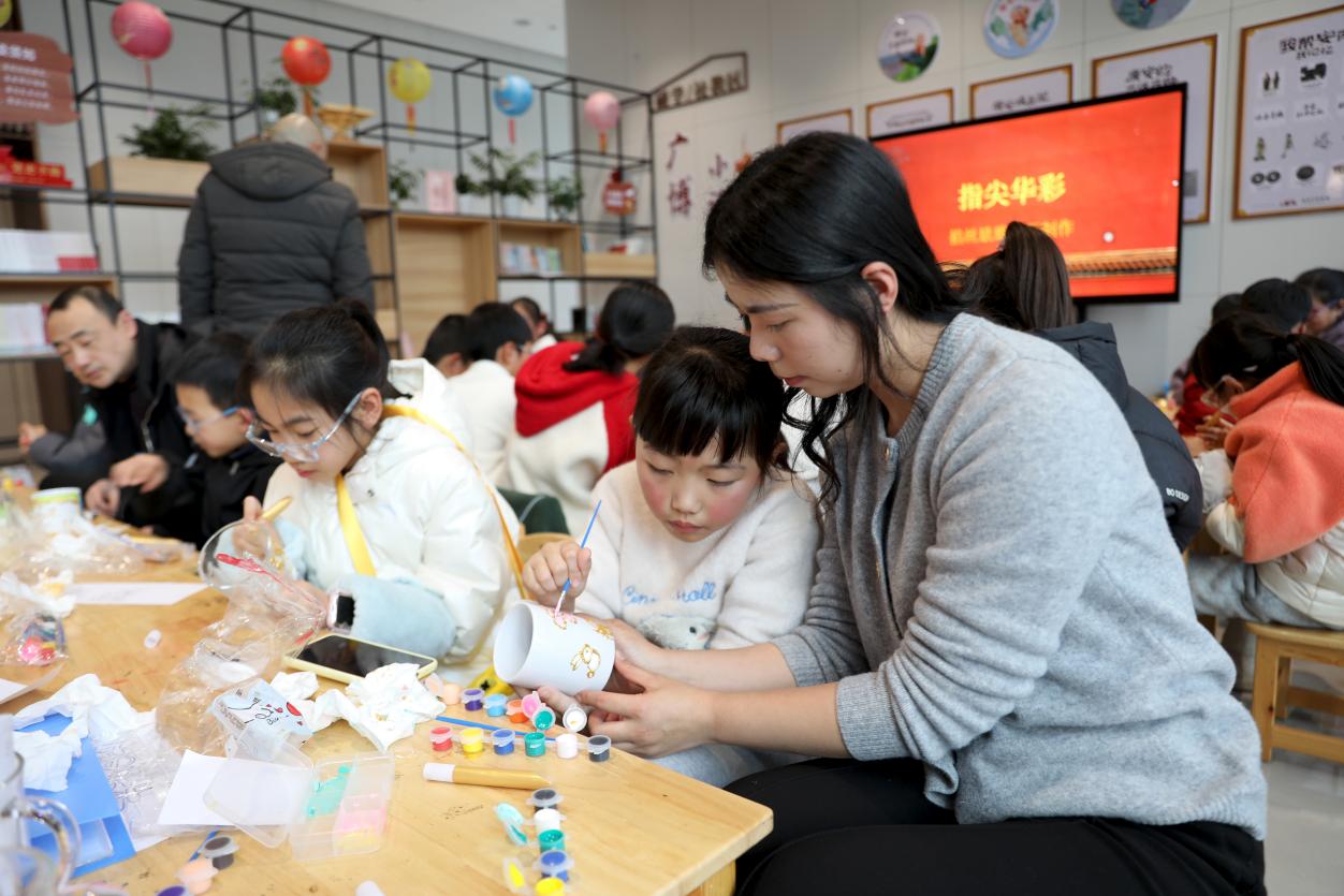 2月3日,在四川省广安市博物馆二楼研学社教区广博小课堂,家长在陪伴孩子进行“指尖华彩”故宫掐丝珐琅水杯制作,动手实践掐丝、点蓝工序,沉浸式感受传统珐琅工艺的独特魅力,触摸文物背后的历史艺术底蕴。