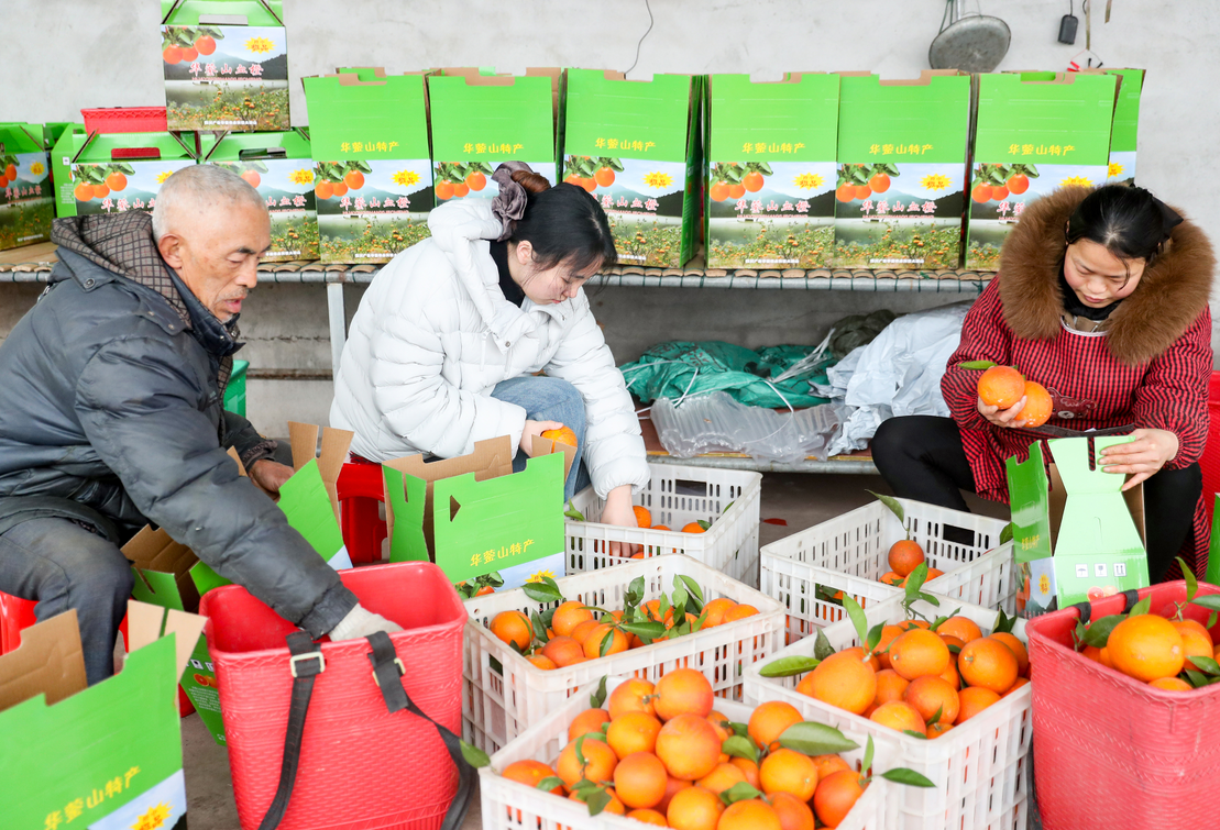 四川省华蓥市永兴镇大佛山村的村民奔忙果园,趁立春时节抢收金灿灿的时令水果血橙,通过线上线下销往春节市场,丰富市民“果盘子”。(邱海鹰)