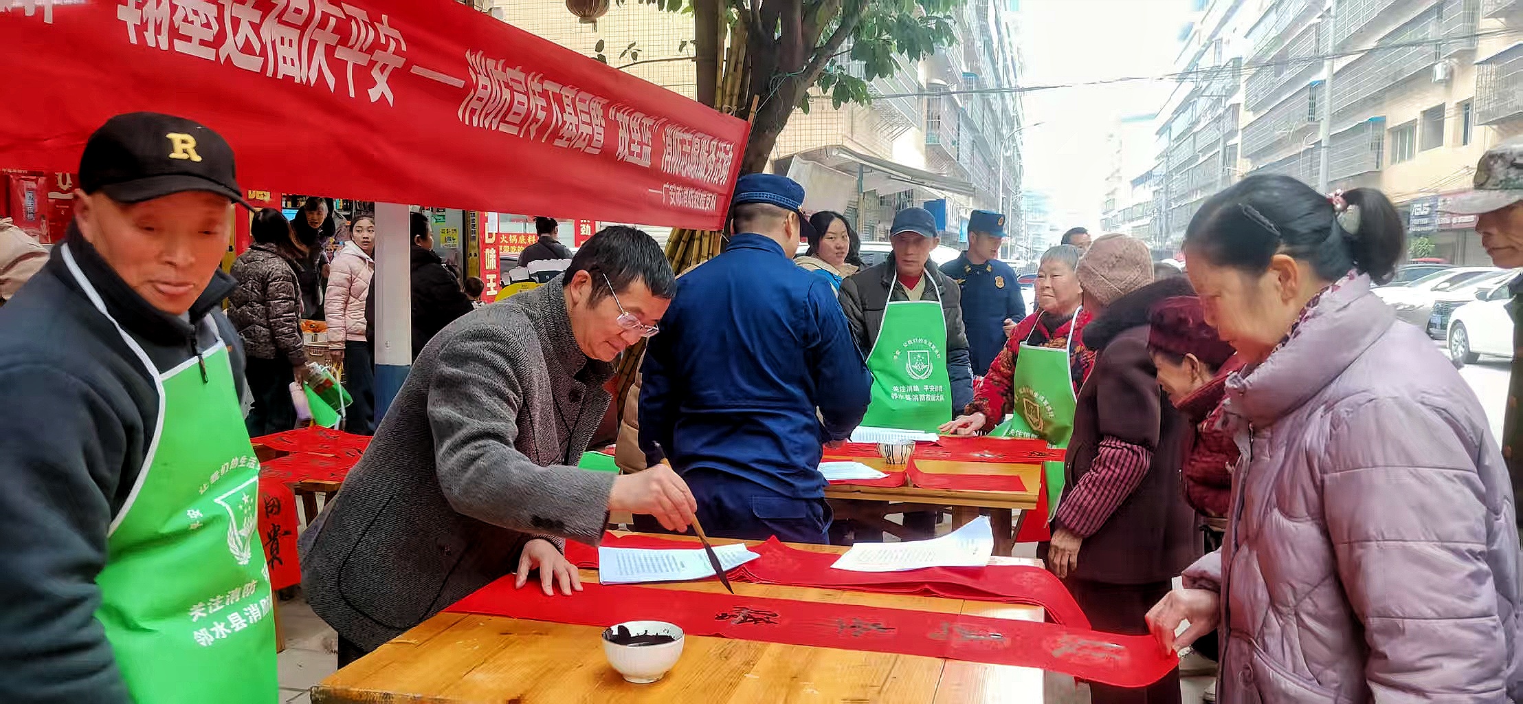 这是邻水县消防救援大队与当地书法家协会共同带来的一场特别活动。没有生硬的条款宣讲,消防知识被凝练成一句句朗朗上口的对子,写进春联里,送到村民手中。