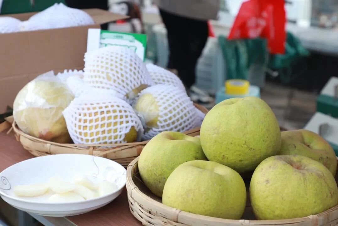 展区内,数十个展位依次排开,琳琅满目的农特产品让人目不暇接。具有呈贡本地特色的展位上,宝珠梨与鲜花相映成趣。作为“果中君子,滇中梨王”的呈贡宝珠梨,是国家地理标志产品,果皮青翠、果肉雪白,肉质脆嫩多汁,咬下一口,清洌的蜜香在口中蔓延。水仙花、蝴蝶兰等年宵花,将春日芬芳融入新春滋味,吸引了市民驻足观赏、前来选购。此外,寻甸火烧干巴、东川面条、禄劝天麻等各县区特色农特产品展位前,也围满了咨询选购的市民,人气十足。