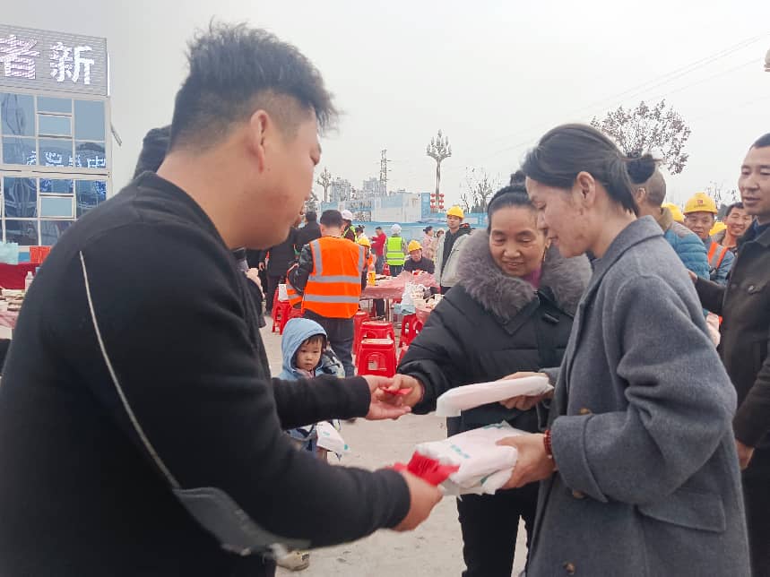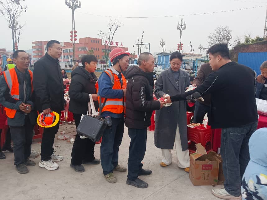 重庆精亦精经建筑装饰工程有限公司负责人王晓琴在现场感动地说:“大家都来自五湖四海,辛苦了一年。在这个本该回家团圆的春节,为了工程的顺利推进,大家选择了坚守。我代表项目部施工方,衷心感谢每一位工友的付出!”
